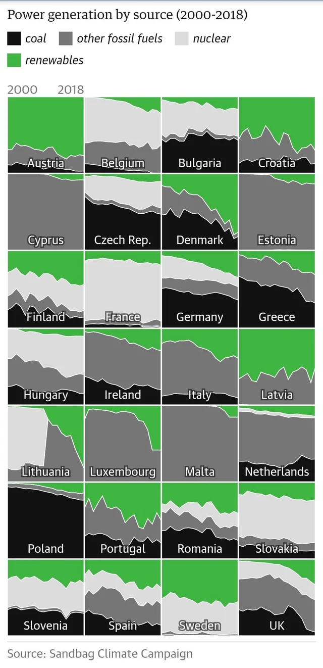 И в этой статитстике, зеленые виды энергетики в ЕС, по фактическим данным, растут по 20-30% в год и быстро замещают "грязную" энерегетику.