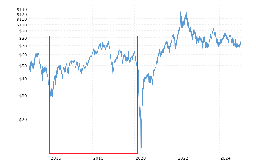 Я вот на графике цен WTI crude oil не вижу каких-то четких трендов в 2016-2019 годах.