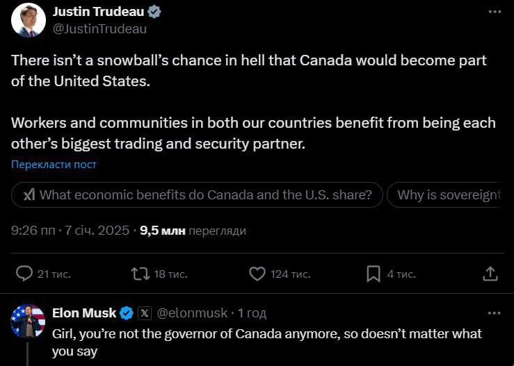 А вот подобные высказывания Трампа и Маска (двух идиотов), навевают на меня тоску.