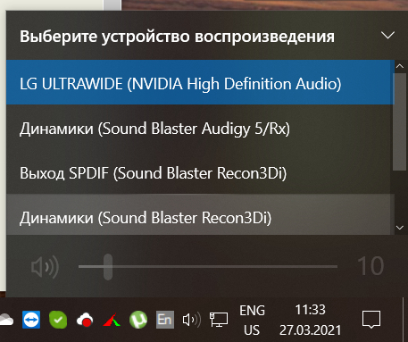 Кстати рекомендую SoundSwitcher, басплатная прога для быстрого переключения между всеми аудио устройствами наушниками, колонками, блютуз (дефолтное аудио устройство), на клавиши ALT + CTRL + C. Зверски удобно - soundswitch.aaflalo.me