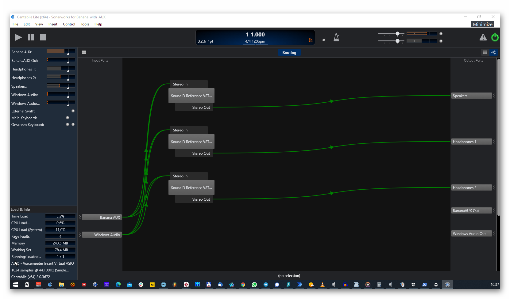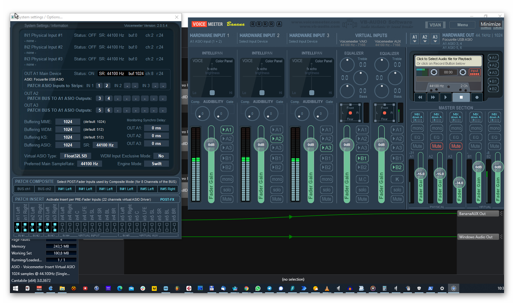 Могу в Cantabile понизить/совсем убрать громкость AUX/всего остального, записывать что-то с основного экрана в OBS, а на левом мониторе заниматься другими делами. Ну и вообще Banana очень радует, думаю попробовать Voicemeeter Potato, ну и, возможно, Dante Via.