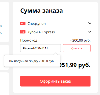 ? Aligarazh200all111 предоставляет скидку 200 от 2000 рублей для всех пользователей