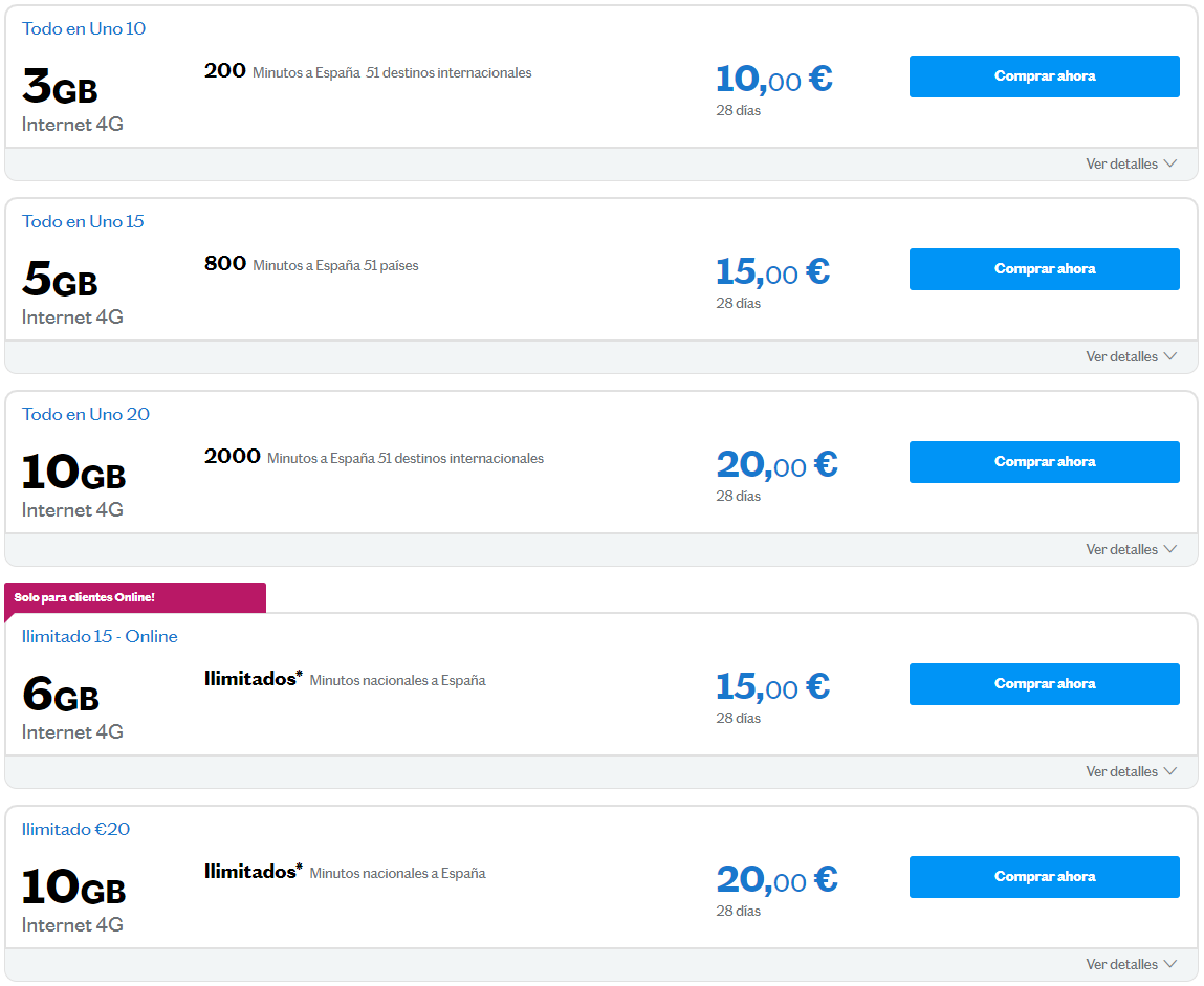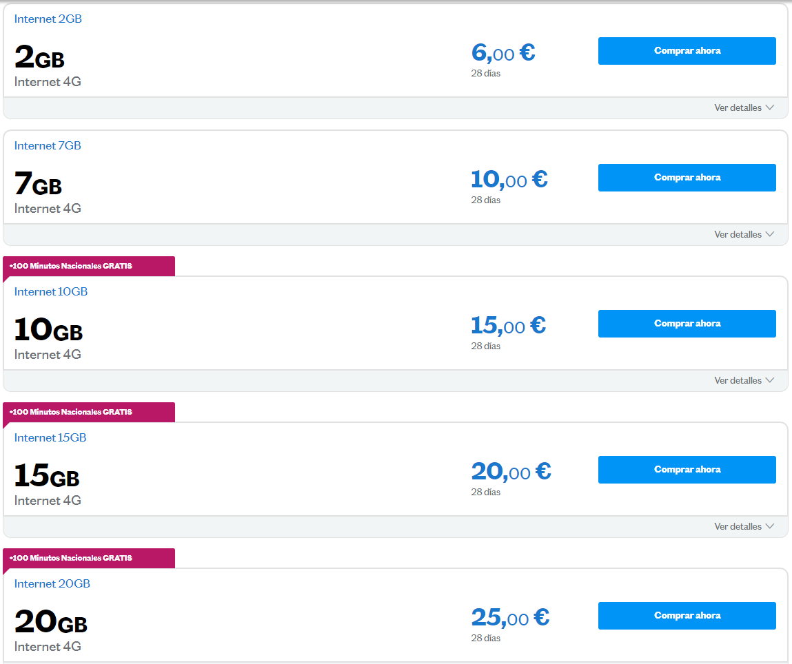2gb за 5 евро (плюс еще 0.5гб на низкой скорости)