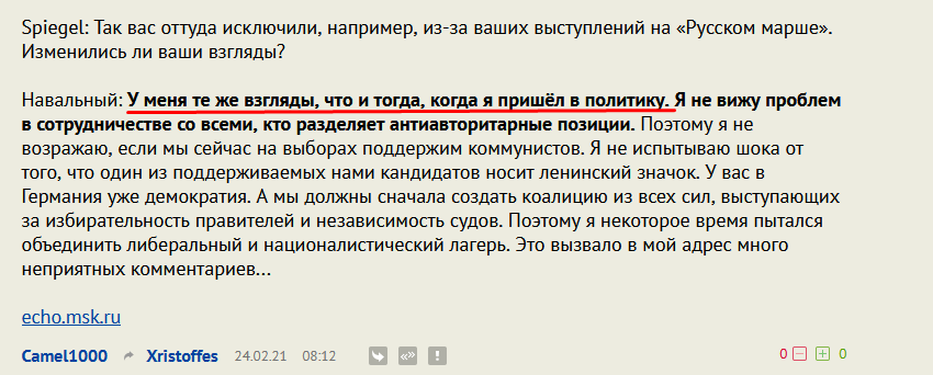 "Навальный много чего в 2000-х наговорил и нациналистического и насилоьственного и дискриминационного.