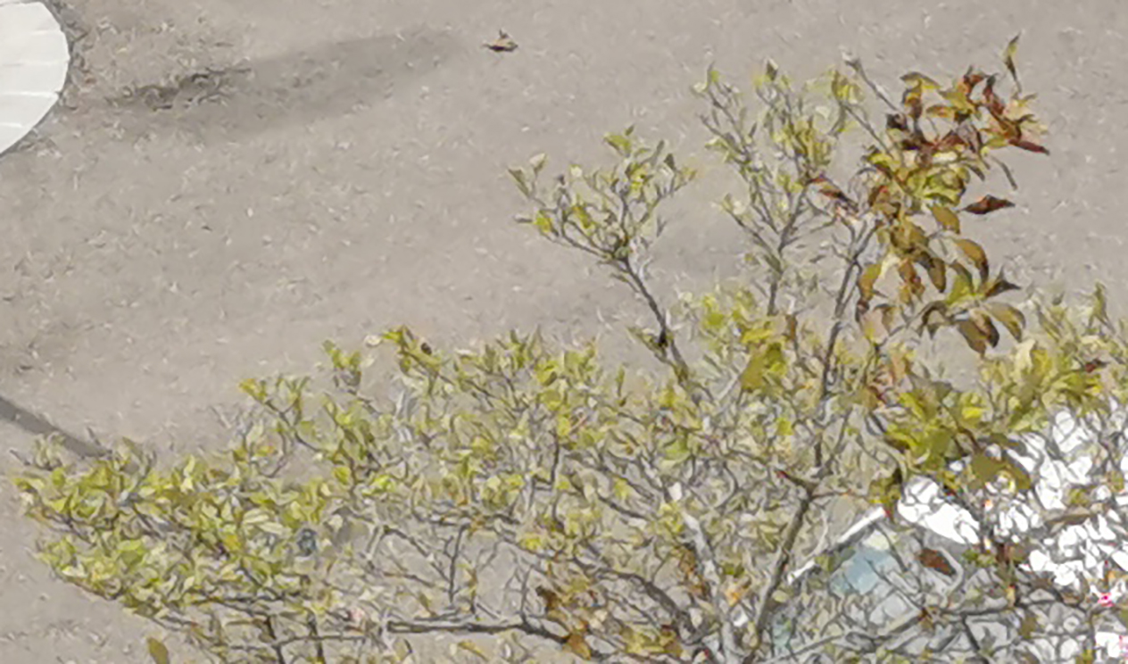 Рискну предположить, что те, кто писали софт для внутрикамерного режима 10 мп ставили во главу угла сохранение естественности картинки (цветопередача, полутона и т.д.), что выливается в подобие софт эффекта и мы наблюдаем недостаточную (в сравнении) четкость на контрастных элементах. В режиме же 40 мп. мы наблюдаем картину противоположную. Нам "стараются" выдать как можно больше деталей за счет дикого шарпа и адского шумоподавления. Да, надписи более читаемы, но подчас буквы на номерах идут вкривь и вкось. Но если мы посмотрим в другие области 40 мп фото, то там картина не такая радужная.