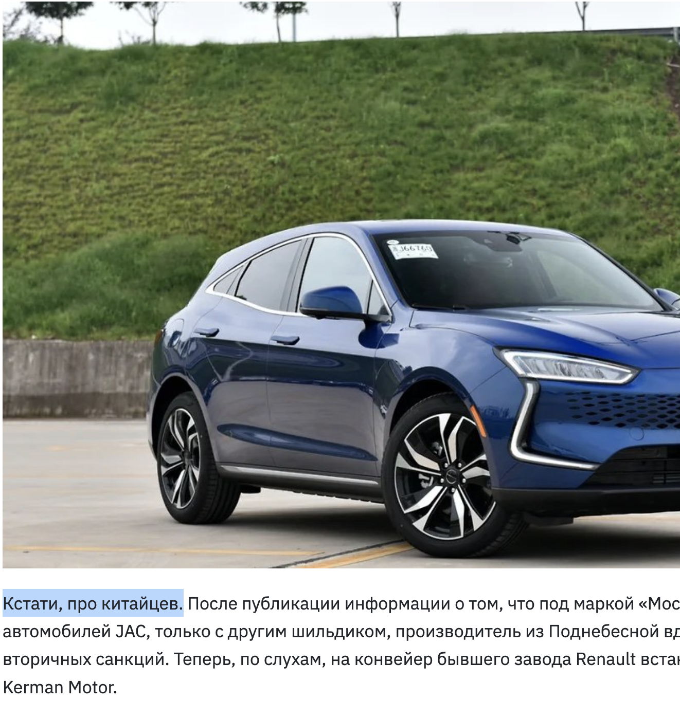 Я привел цитату в связи с формулировкой Алекса: "… "страшно успешное импортозамещение", при котором китайские и иранские автомобили начнут продаваться с шильдиком "Москвич"".