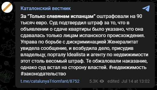P.S. А, чуть не забыл... Как вы считаете, допустимы ли объявления вроде российских "сдаётся только славянам"? Это прямой вопрос.