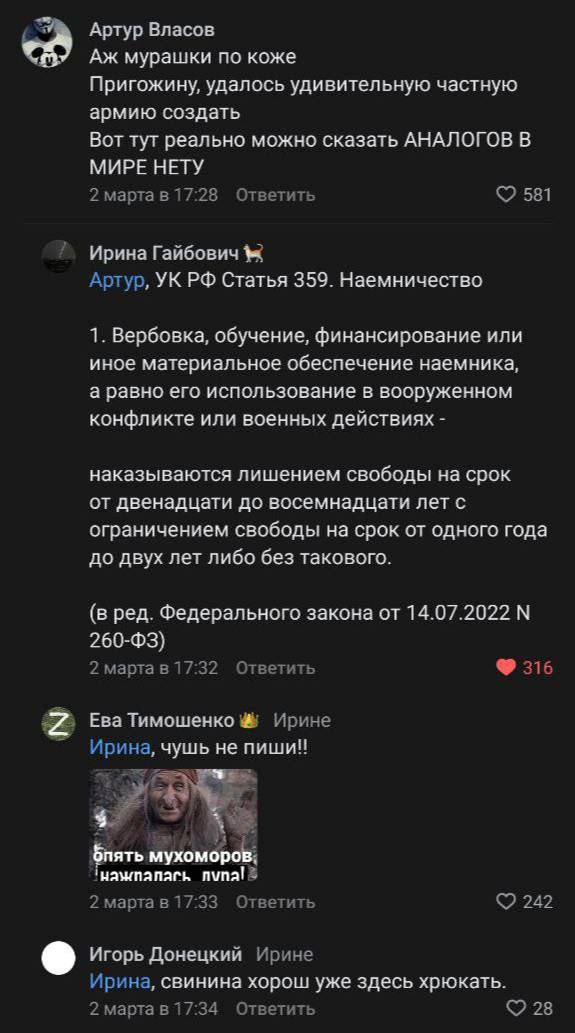 То бишь, если "за РФ" – да что угодно, хоть наёмники, хоть вообще зеки, российскому закону пох, рука руку моет. Наказываются лишь те, кто якобы "против РФ".