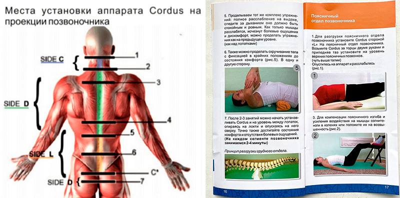 В конце сеанса с аппаратом Cordus Vibro нужно выполнить несложные упражнения (по инструкции из коробки), чтобы закрепить результат. Упражнения тоже были разработаны командой создателя методики Cordus&Sacrus, реабилитологом и нейрофизиологом Юрием Корюкаловым. В основе упражнений лежит идея кинезиотерапии (реабилитационной гимнастики), известным популяризатором которой является Сергей Бубновский.
