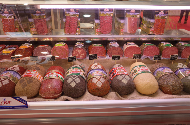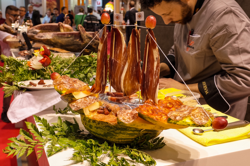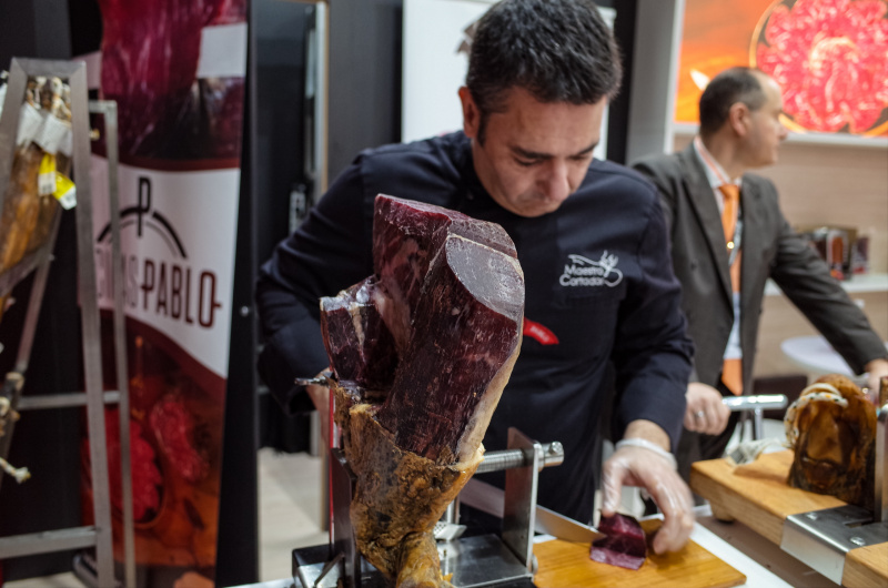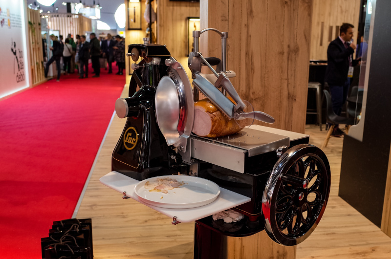 Демонстрировали всякие аппараты для нарезки ветчины, колбасы, хамона и так далее.