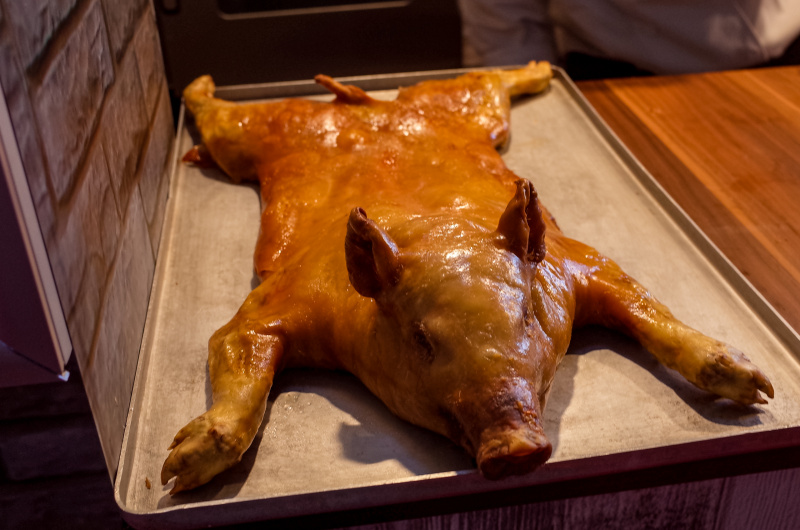 Жареный в духовке поросенок - ну так это наверняка контора из Сеговии. Так оно и оказалось - M.G. Cohinillo de Segovia.