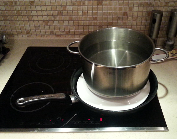 На сковородке разогревается масло, тушка кладется на сковородку, накрывается тарелкой, на которую нужно поставить какой-то груз. Удобнее всего - большую кастрюлю с водой.