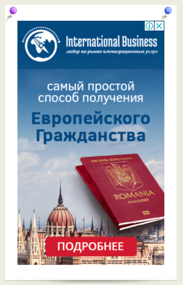 Алекс тут Гугль в который раз предлагает "самый простой способ получения европейского гражданства" от неких International Business. Уже вызывает гомерический хохот -- два румынских паспорта на фоне венгерского Парламента. Причем это уже не первый вариант -- раньше были с другим ракурсом но парламент тот-же.