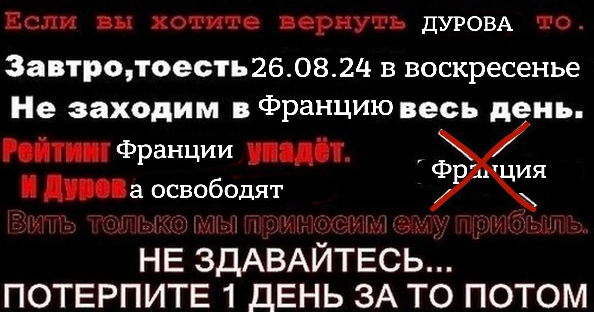 Не думал, что когда либо выйду с такой инициативой. Но предлагаю Роскомнадзору временно ограничить доступ к сайтам французских компаний и организаций, которые зарабатывают на территории России. И пока Павла Дурова не отпустят, так следует сделать всем странам мира, которые уважают свободу и тайну переписки своих граждан. Язык денег французы понимают быстрее любой дипломатии.