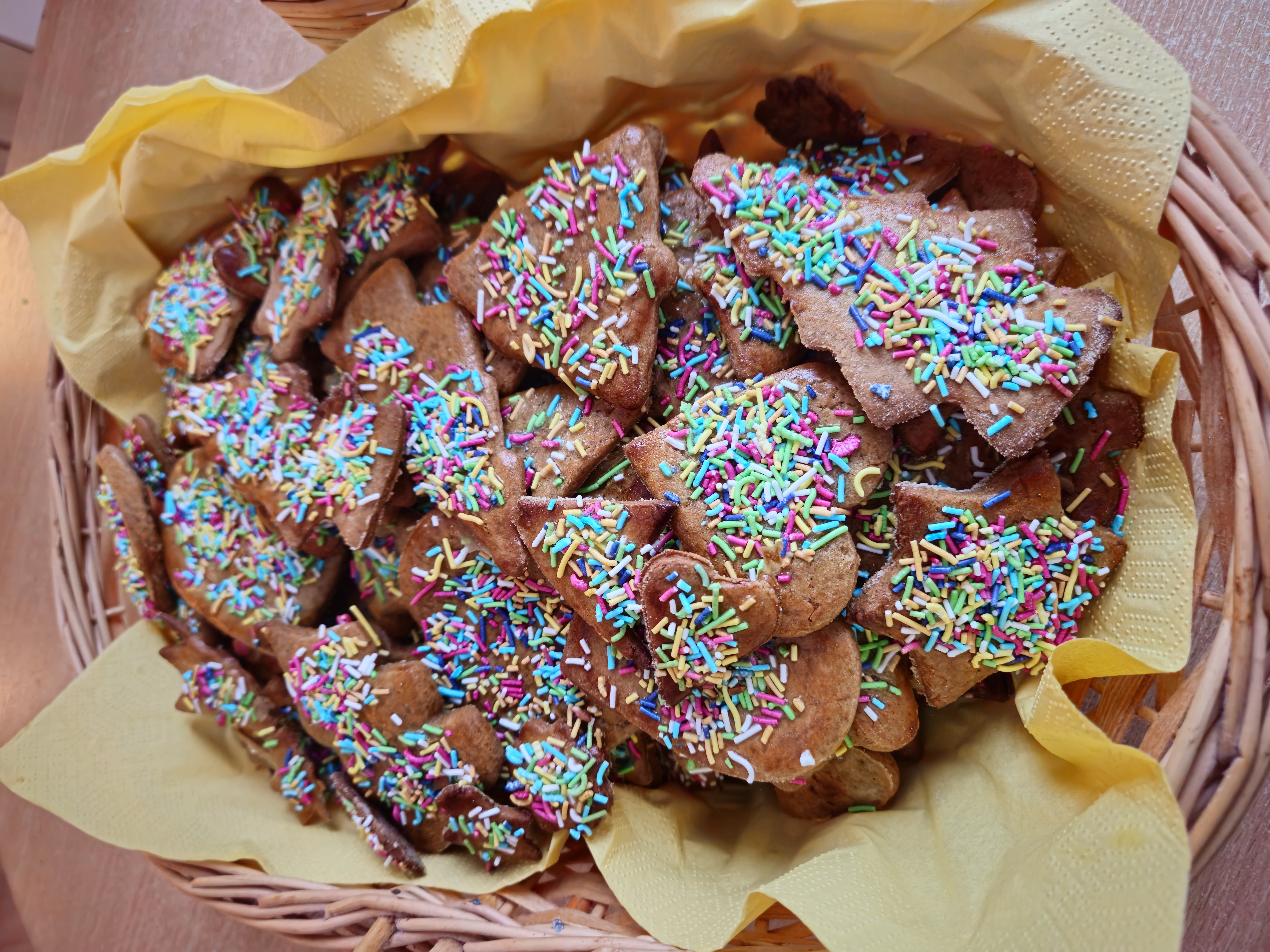 Собирались с друзьями, каждый сделал и принес что-то своё. Получился разнобой, с массой фруктов, тортиков, супчиками и прочими оливье и селедкой под шубой. В общем, относительно дизорганизованно, но уютно 😄