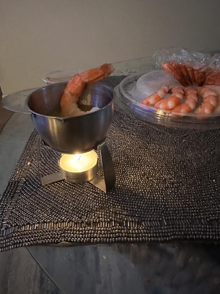 Поужинал холодцом, завтракаю креветками, которые вчера показались излишними. Оливье, честно говоря, сделали, но я его не ем по соображениям диеты.