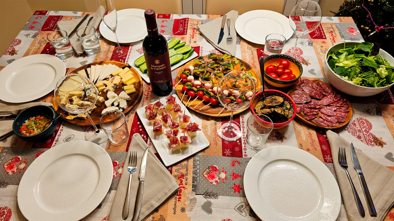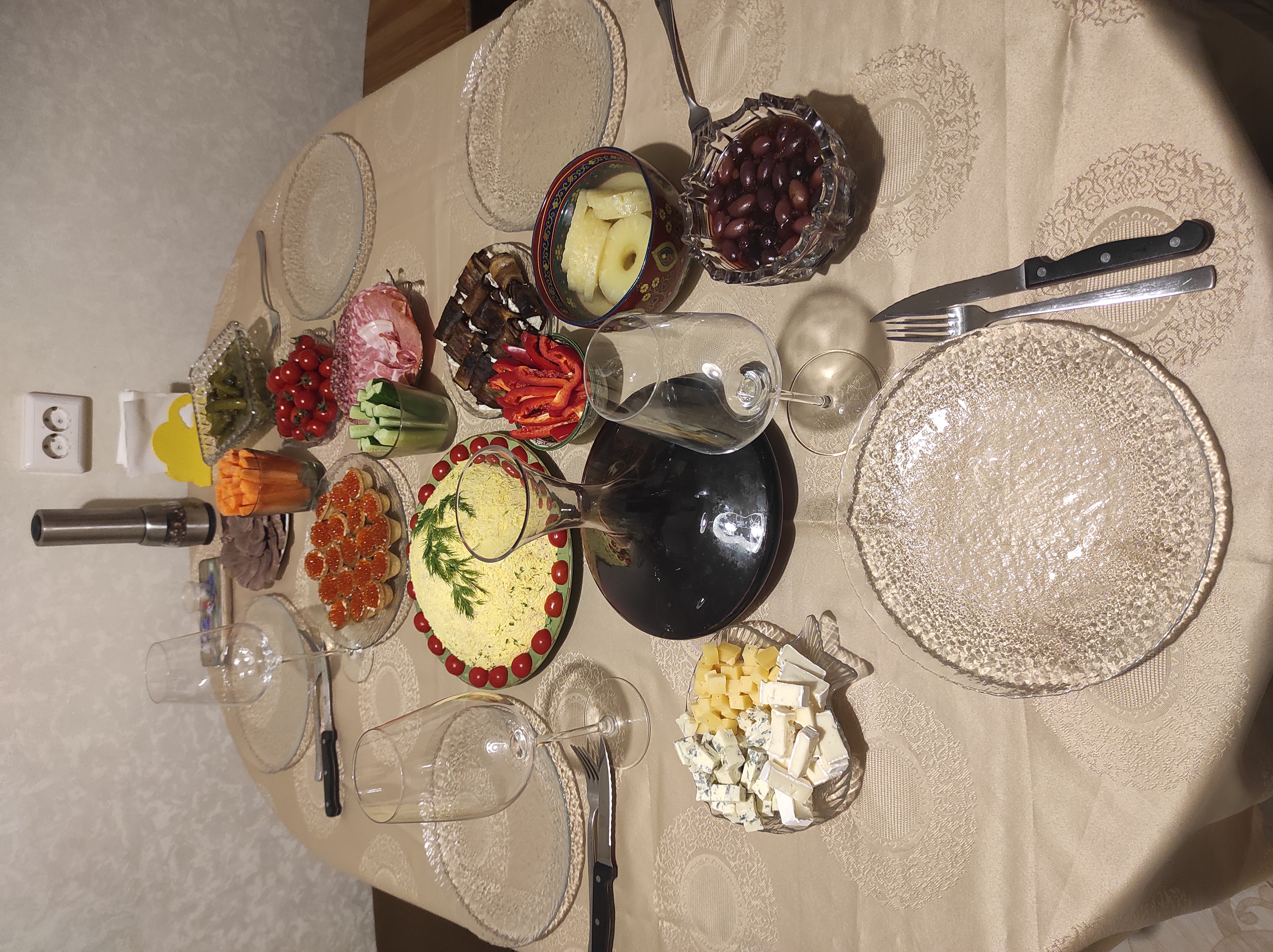 У нас были гости (двое), поэтому новогодний стол был нетипично продвинутый. Вот такой.