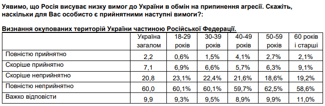 Ваш тезис "отдать России захваченное" поддерживает аж 9%. Возможно вы заметите, что от ваших "50%" это сильно отличается.