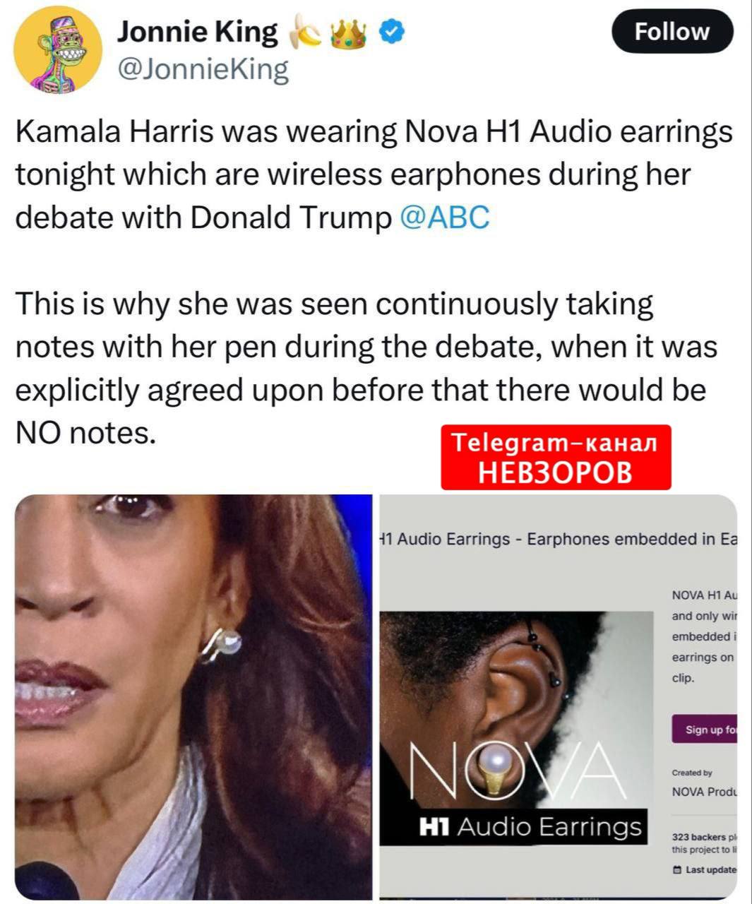 Я помню, когда Клинтонша с Трампом дебатировала, мой зять (??? муж кузины ???) мне втюхивал, что Клинтонша на какой-то платформе стояла, чтобы выше казаться. Хотя снимали их со всех сторон и чуть ли не из космоса и были кадры её со спины с туфлями на каблуках, чётко стоявших на полу. Это из той же серии. Вот то есть, вы серьёзно считате, что то, что Камала отвечала, ей надо было подсказывать? Вот точно-точно? Самим не смешно?