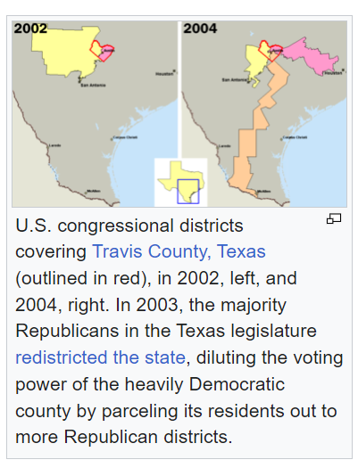 Лучше почитайте, как ваши любимые леваки в рамках позитивной дискриминации нарезали во Флориде округа так, чтобы включить как можно больше нац.меньшинств. В результате получались округа-змеи длиной в десятки километров и шириной в одну улицу.
