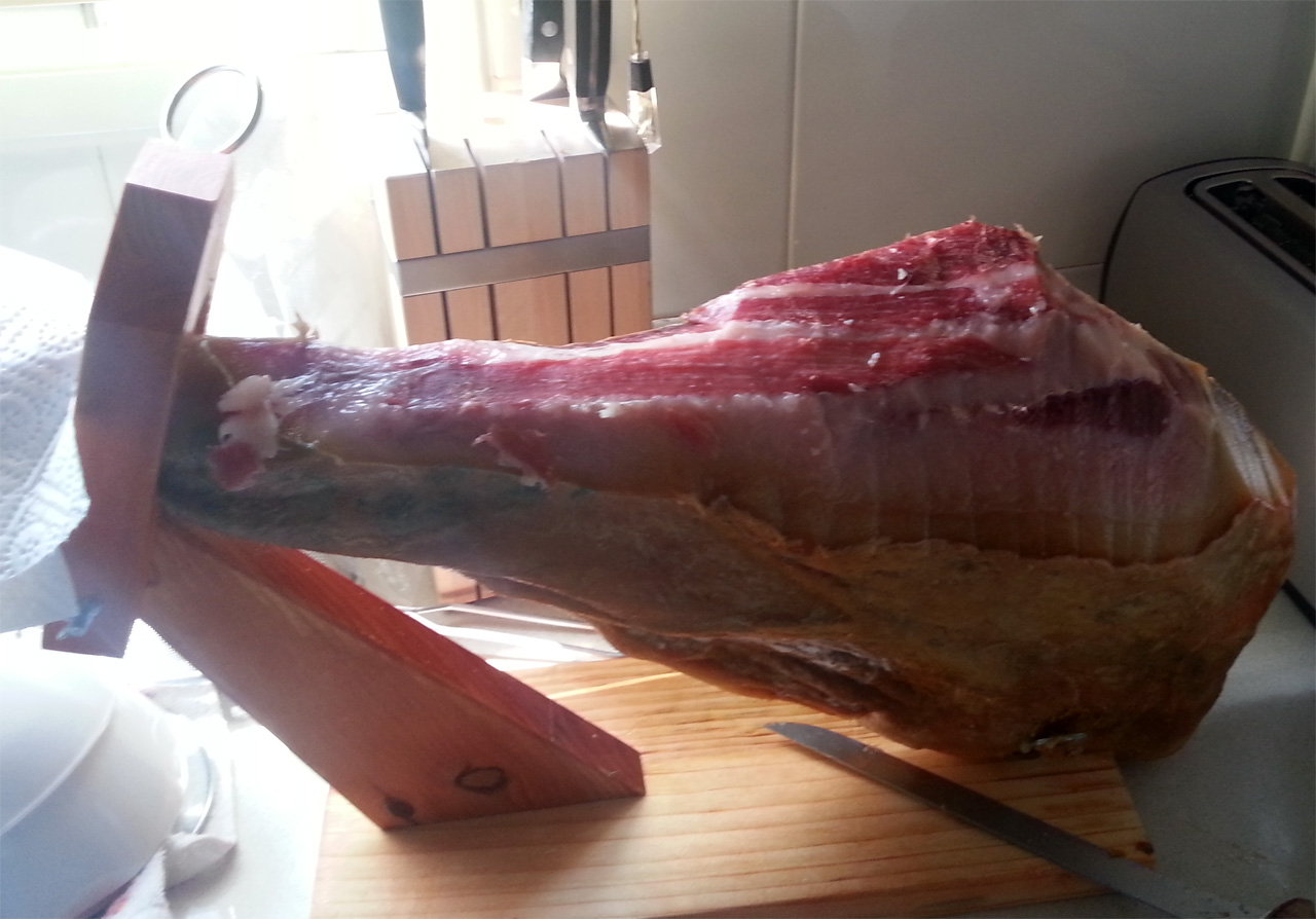 Ну и лишний раз убедился в правильности совета испанских друзей. Я, когда первый раз приехал в Испанию, сразу спросил, какой именно хамон покупать. Они ответили, что покупать надо сначала самый дешевый. А потом ползти вверх. Вот тогда, сказали друзья, четко будешь знать, в чем разница, и почему хороший хамон стоит дорого. Они себе покупают вот именно такой. Говорят, что ниже по качеству спускаться уже невозможно. Но это как и с вином.
