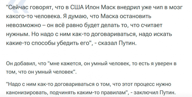 Но беда в том, что в интервью Карлсона Путин выглядел "якобы нормальным" для Запада. Это отмечают практически все. И именно в этом все обвиняют Карлсона (более чем справедливо обвиняют).