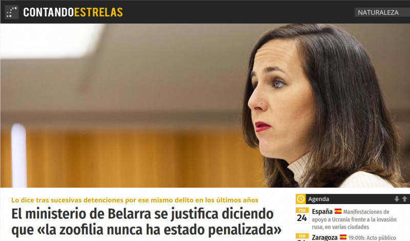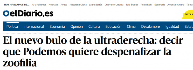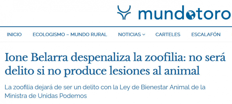 Но в испанской прессе сейчас полно статей с заголовками вроде: "Беларра (как вариант - Podemos) декриминализирует зоофилию".