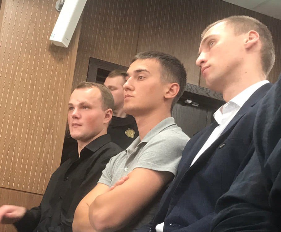 Рассмотрение дела Устинова заняло два дня. На суде Лягин заявил, что Павел, мол, выкрикивал лозунги, а во время задержания шестью росгвардейцами в броне причинил Лягину сильнейшие моральные и физические страдания. Вот этот Лягин на фото в центре. Лягин и другие свидетели. Благодаря которым ни в чем не повинный молодой человек получил ТРИ С ПОЛОВИНОЙ ГОДА!