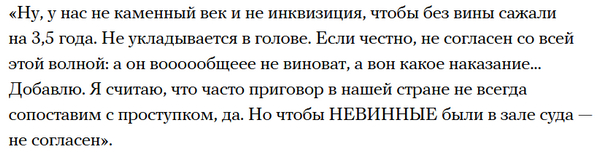 Вы смотрите из Испании и окружили себя своим кругом общения, аудиторией сайта и вам кажется, что большинство думает также, как и вы. Но это совсем не так. Правда заключатся в том, что подавляющее большинство населения страны такие приговоры, посадки, избиения людей на улицах полностью поддерживает. И не только поддерживает, а жалеет, что царь с ними очень мягко поступает, а надо бы пожестче.