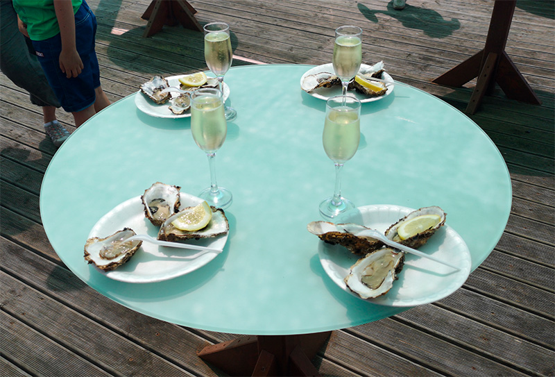Приехали на самую знаменитую ферму, которой много лет рулит дедушка... не запомнил его имени, но он наверняка Джосеп или Ореоль. К тому же дедушки не оказалось на месте и нас обслуживала его помощница. Это тоже ресторанчик на воде. Туристам показывают, как выращивают мидии и устриц, ну и прямо на месте можно полакомиться свежайшими устрицами и свежесваренными мидиями.