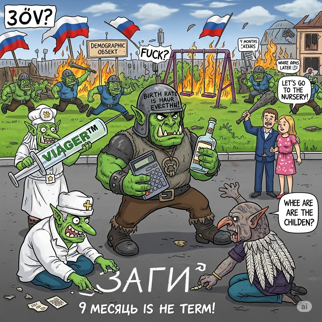 Орк-демограф – бегает с калькулятором и кричит: "Рождаемость упала – срочно трахать!"