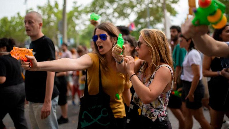 Некоторые протестующие на Лас-Рамблас стали обливать туристов из водяных пистолетов, заставляя их покинуть рестораны.