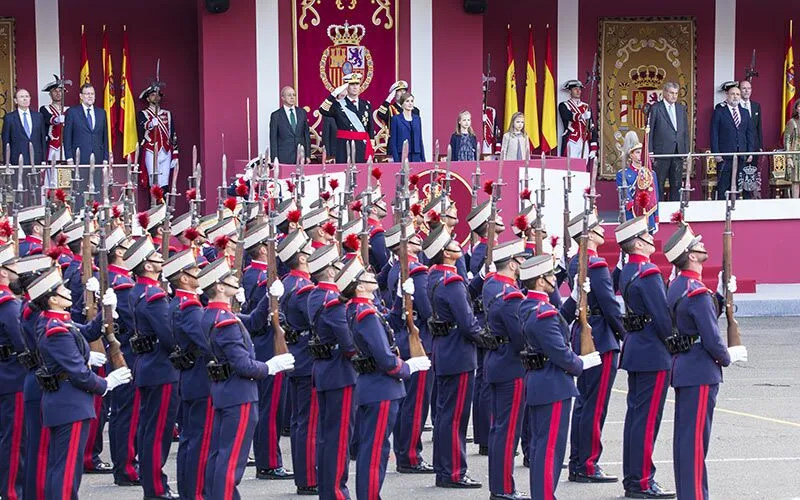 В этот день в испанской столице проходит пышный военный парад, на котором присутствует королевская семья.