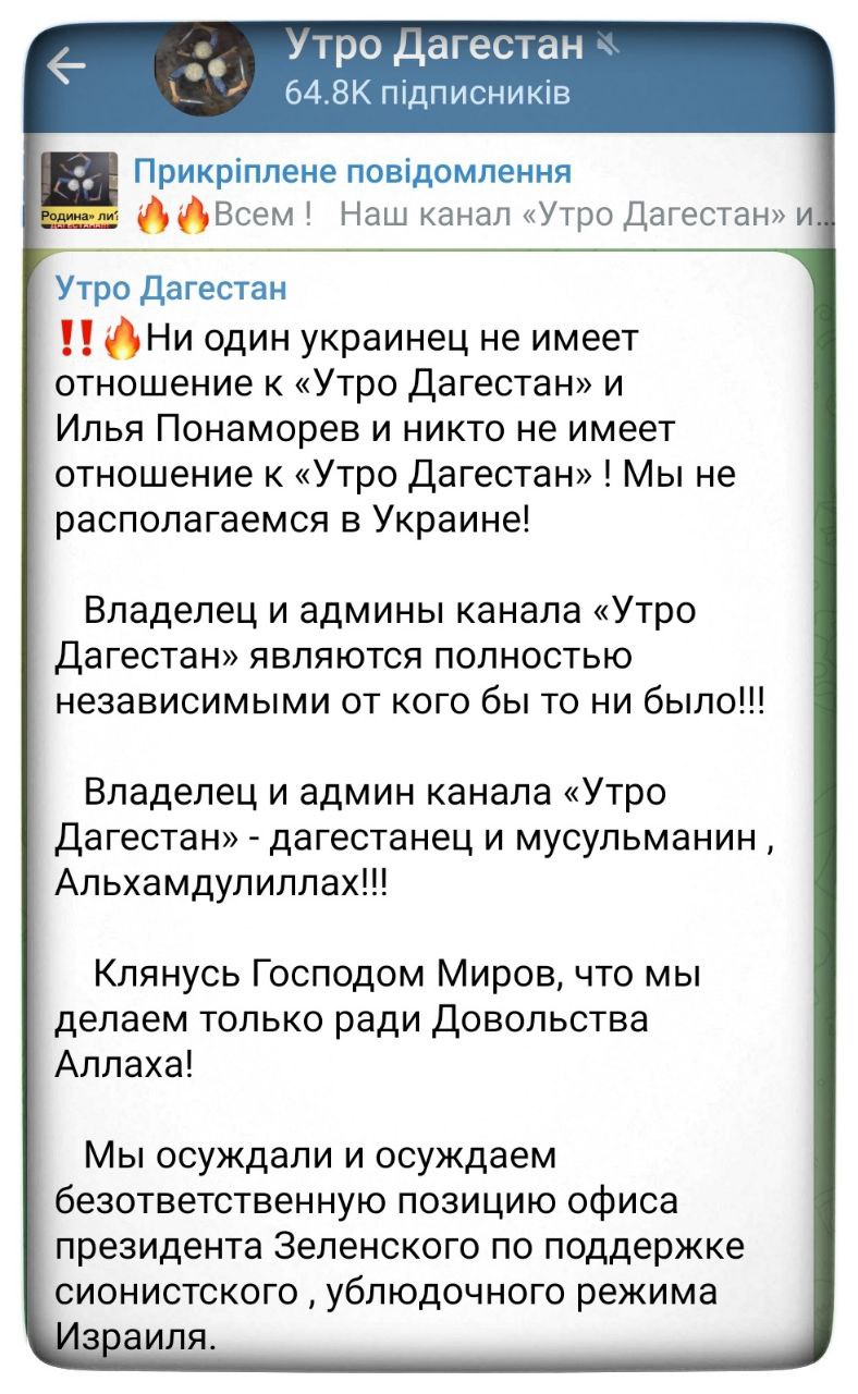История с продолжением использования механизмов АнтиСистемы против Системы и Государства продолжается. То есть продолжается все тот же мятеж Пригожина, нацеленный на перехват власти у Государства как структуры. В Кремле безусловно ознакомлены- кто и как организовывал антисемитский погром: боевики из близкого к кадыровцам Карабудахкентского района были вычислены сразу, как и вербовщики, и автобусы, и транзакции. Так же как в Кремле прекрасно знают,что всю подсветку организовали структуры Ковальчуков - Известия, Рен ТВ,КП.