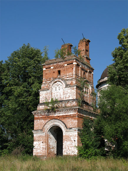 За этой колокольней стоит заброшенная церковь. Там на крыше выросли здоровенные деревья - в детстве мы туда лазили, собирали на крыше землянику, грибы, ну и просто тусовались - прикольно... Сейчас церковь вроде собираются восстанавливать.