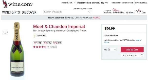 Ничего себе преподаватели гуляют, подумал я. У Дика в руках - магнум (полуторалитровая бутылка) Moёt & Chandon Champagne Imperial Brut. Во Франции в магазине производителя самый дешевый вариант в обычной бутылке - 36€, я там покупал. В Штатах в магазинах оно стоит где-то $70-100, хотя если очень постараться, то в Интернете можно найти за $50-60. Магнум, соответственно, будет стоить минимум $100, а в магазине - минимум $150. Дешевенькое шампанское, чего уж там...