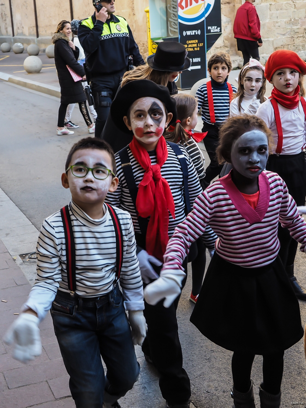 Началось! Для каждой группы (там нередко смешиваются разные классы - большие с маленькими) впереди едет машина, которая, во-первых, расчищает путь процессии, а, во-вторых, в ней из колонок играет музыка, под которую процессия танцует.