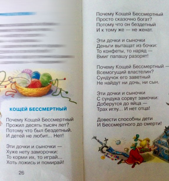 Любопытное стихотворение из детского сборника. Про жену, чувствуется, у автора особенно наболело. А уж как дети "трах иглу и нет отца" - это вообще прям триллер.