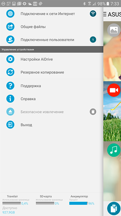 Для работы с диском надо скачать и установить программу ASUS AiDrive (есть для Android и iOS). Защищенная связь с диском устанавливается через NFC, после этого все готово к работе.