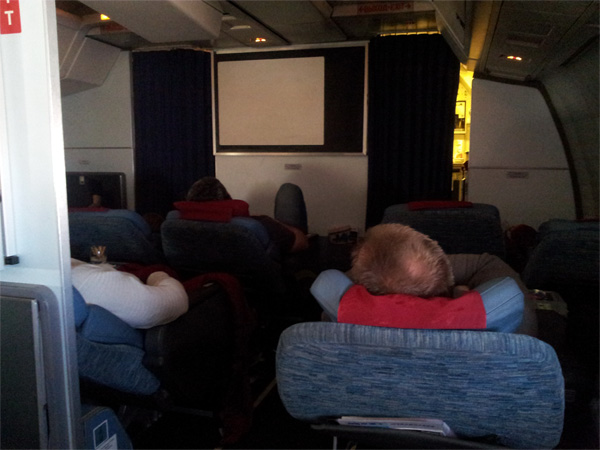 В экономе такой радости, конечно, не было, но самолет вполне комфортный (Boeing 767-300), обслуживали безо всяких нареканий (хотя, кстати, от некоторых стюардесс хотелось бы периодических улыбок), так что долетели хорошо.