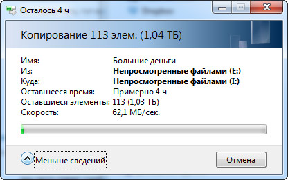 А вот копирование где-то 1 Тб с одного диска, вставленного в док-станцию, на другой, вставленный туда же.