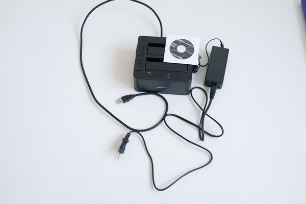 В результате, когда в очередной раз заказывал себе какие-то железки, вдруг обратил внимание на док-станцию на два диска 3,5" или 2,5", поддерживающую USB 3.0. В данном случае это была модель SATA QuickPort Duo USB3.0, но я уверен, что и другие производители такие предлагают. Моя стоила 33 евро.