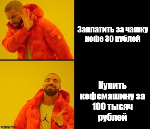 Ну давайте прикинем через сколько окупится кофе машина.