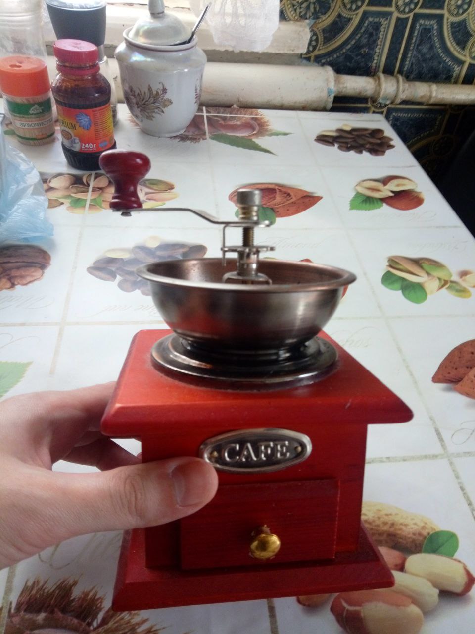 - перемалываем кофе ручками