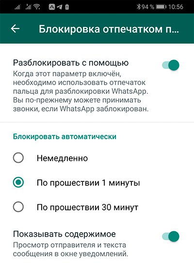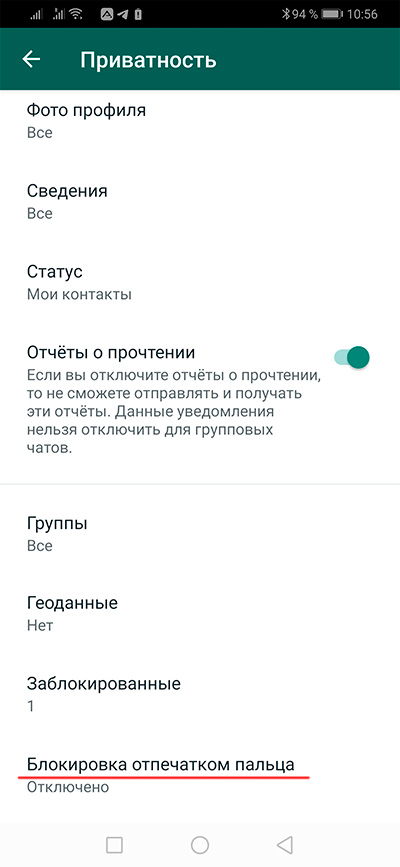 В WhatsApp появилась возможность закрывать доступ по отпечатку пальца - может, кому это пригодится. Доступ по отпечатку в смартфоне должен быть включен. Дальше Настройки - Аккаунт - Приватность.