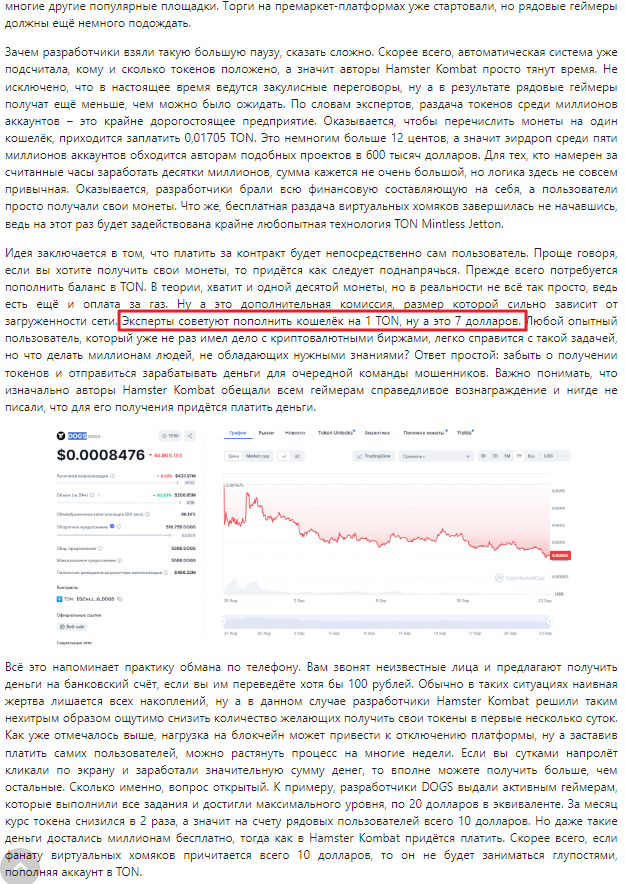 При всем уважении. Но есть большие сомнения, что статья от экспертов. Это некое журналистское расследование уровня журнала Star Hit. А уж претензия в том, что нужно пополнить кошелек на 1 TON - это как доколупаться до почты, что на конверт нужно наклеить марку "стоимостью 50 центов". Это обычная практика, сложившаяся уже десятилетиями - за перевод крипты между кошельками нужно платить. Биткоин тоже бесплатно отправить на биржу не получится.