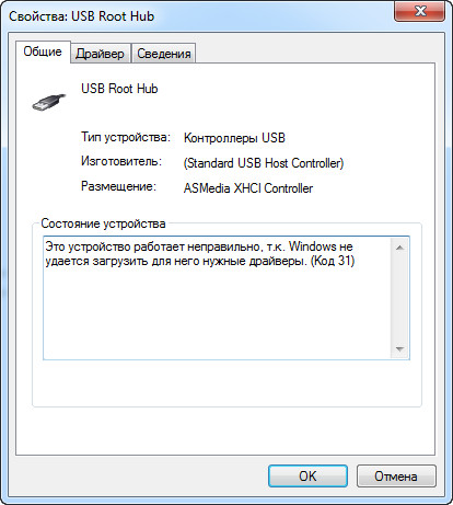Ну и на данный момент сейчас все вот так - неработающие два USB Root Hub (см. картинку).