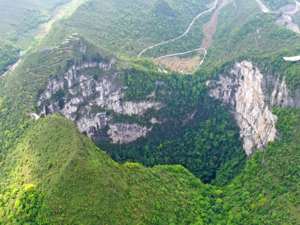 Тянькэн, или «небесная яма», название этих огромных воронок на мандаринском языке, является обычным явлением в карстовой местности. Природные ландшафты в основном состоят из карбонатных пород, таких как известняк и доломит. Когда дождевая вода падает на скалы, в результате химической реакции в структуре скалы начинают образовываться небольшие трещины и туннели. Со временем эти трещины расширяются из-за эрозии и в конечном итоге разрушаются сами по себе, открывая гигантские воронки или пещеры.Воронки, не затронутые деятельностью человека, могут стать оазисом для жизни, особенно для ранее неизвестных видов.