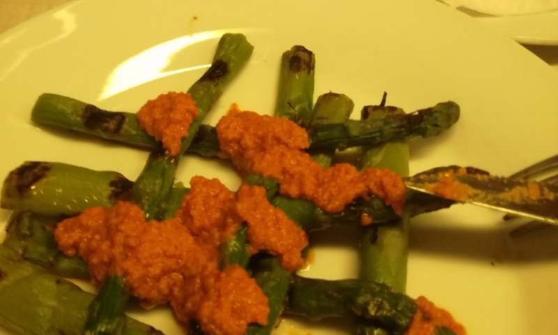 Далее спаржу вываливают на тарелку, наляпывают на нее соуса ромеско, после чего подают клиенту, который за эту невообразимую хрень должен будет заплатить восемь с половиной евро. (Фото из Google: я был в таком изумлении, что сфотографировать это божественное блюдо не догадался.)