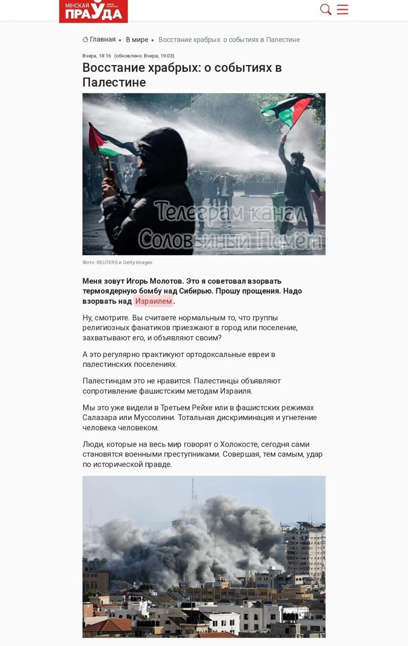 "Meня зовут Игорь Молотов. Это я советовал взорвать термоядерную бомбу над Сибирью. Прошу прощения. Надо взорвать над Израилем.